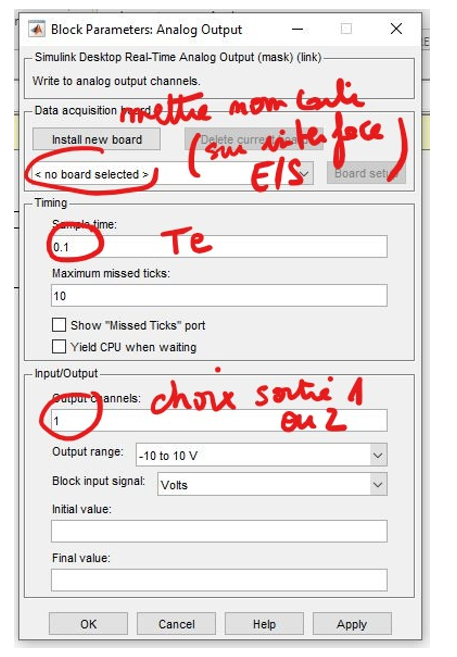Pour cela double cliquer sur le bloc (exemple pour Analog Output) :
